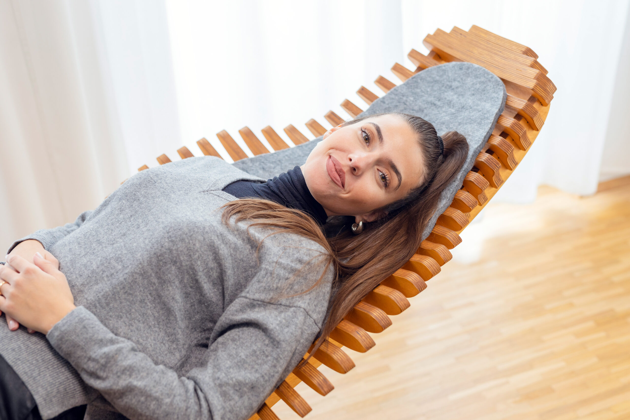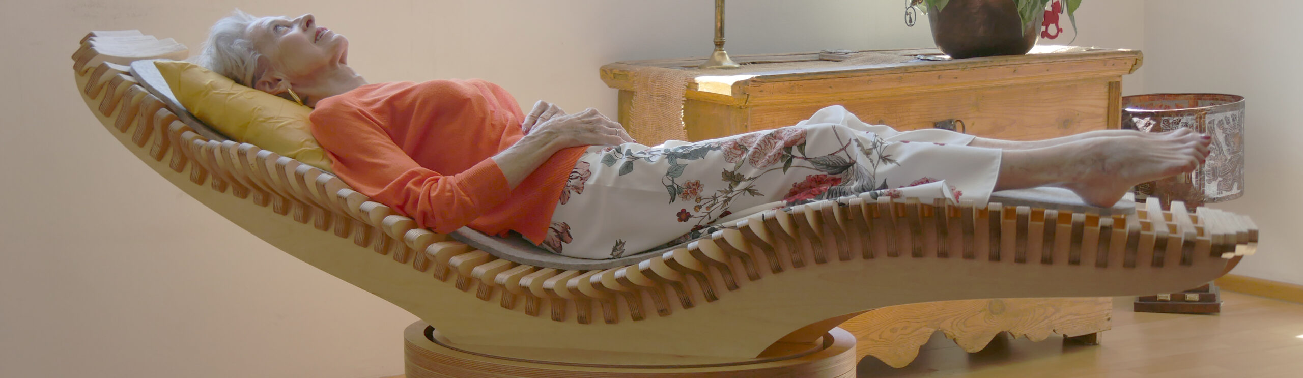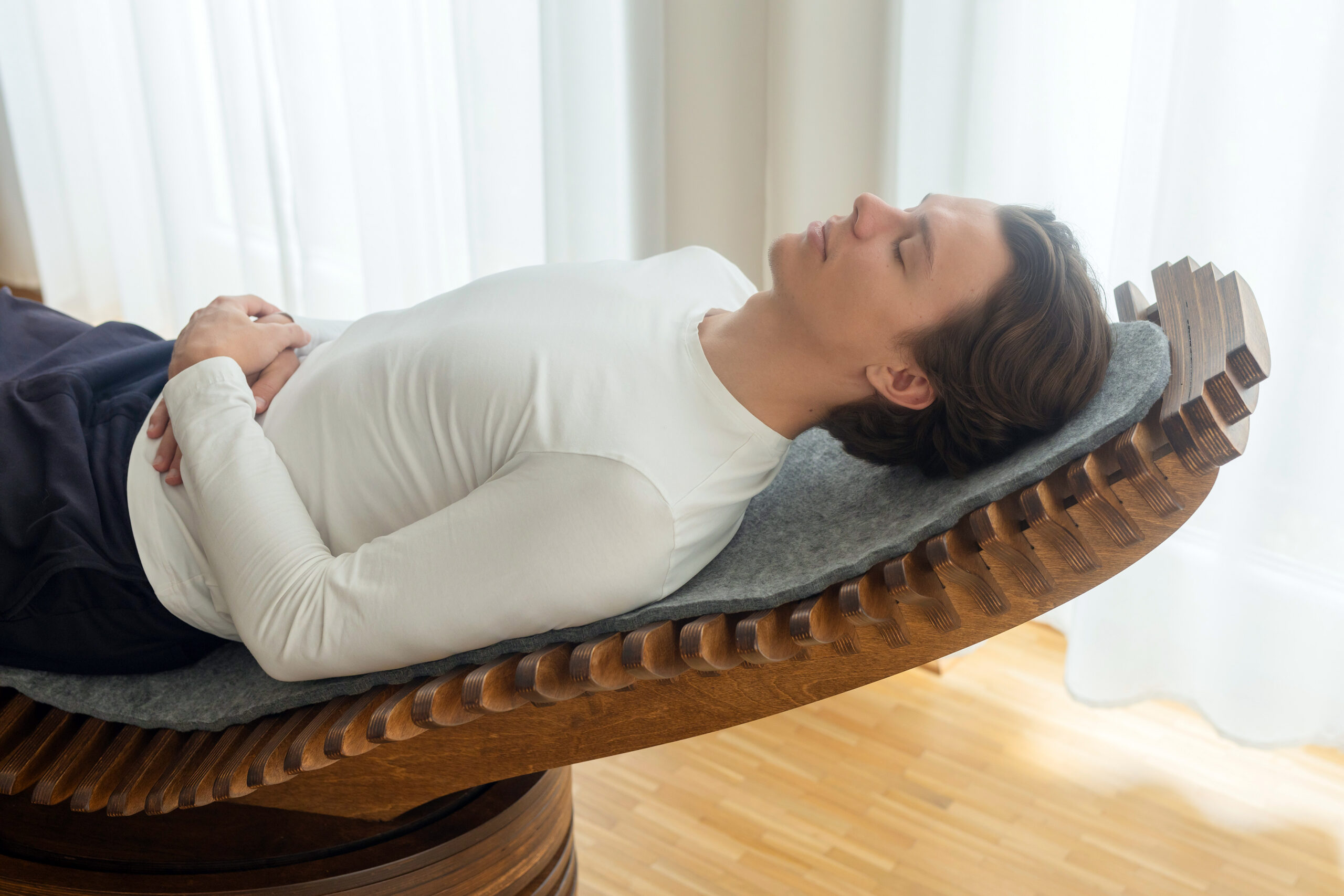 DocWave, die spezielle Wellnessliege, wird nicht nur zweidimensional (Massage), sondern mehrdimensional in Schwingung versetzt. Sobald eine Person auf der Liege liegt und die Schwingung aktiviert wird, kommt es innerhalb weniger Minuten zu einer tiefgreifenden Entspannung der gesamten Muskulatur – einschließlich der glatten Muskulatur in inneren Organen.